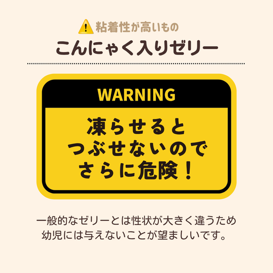 一般的なゼリーとは性状が大きく違うため、幼児には与えないことが望ましいです。